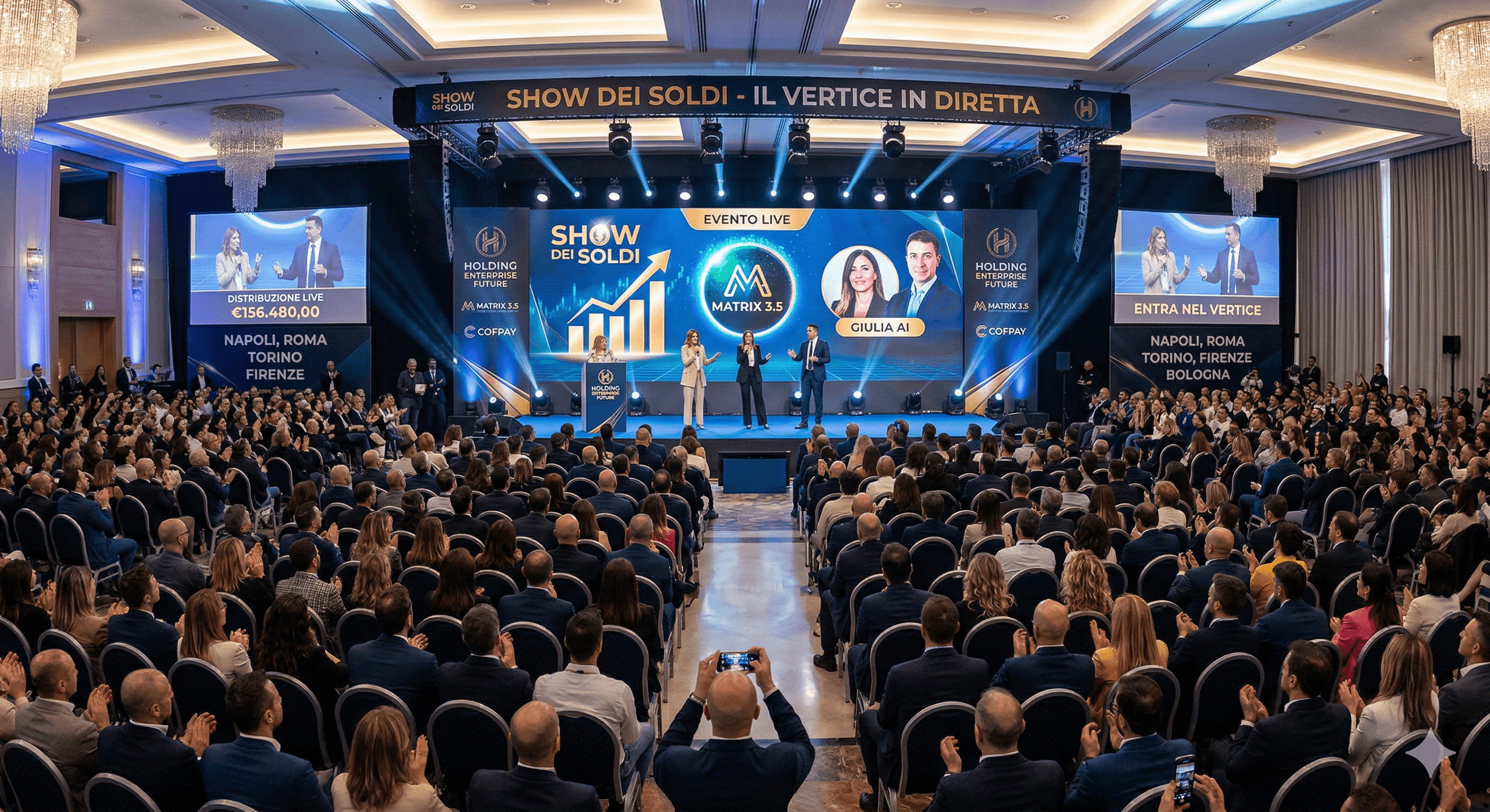 La Potenza del Live: Mentre il CEO Enzo Tramontano e il team mostrano l'andamento globale sul maxi-schermo, tu monitorerai la crescita dei tuoi guadagni direttamente dal tuo profilo riservato.